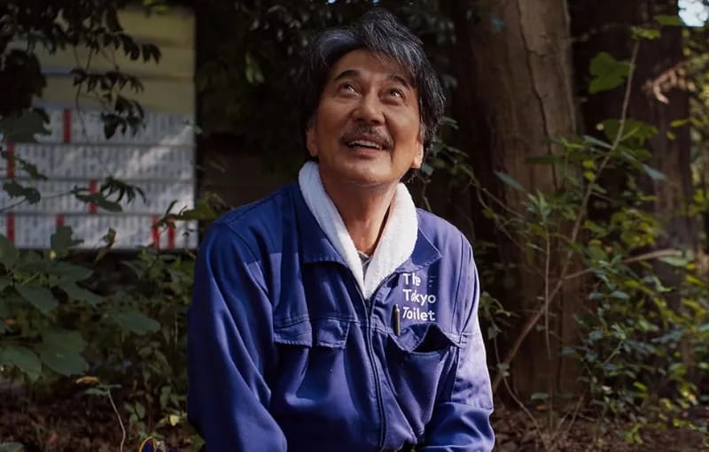 A atuação contida e impecável do lendário ator Kōji Yakusho é o pilar dessa narrativa. Através de seu olhar e de seus silêncios, Hirayama revela um universo interior rico e pulsante. Fora do expediente, ele se dedica com paixão a seus hobbies: a música (ouvindo suas fitas K7 com clássicos do rock e pop), a literatura (com livros de bolso que carrega consigo) e a fotografia (capturando a luz que dança através das folhas das árvores).
